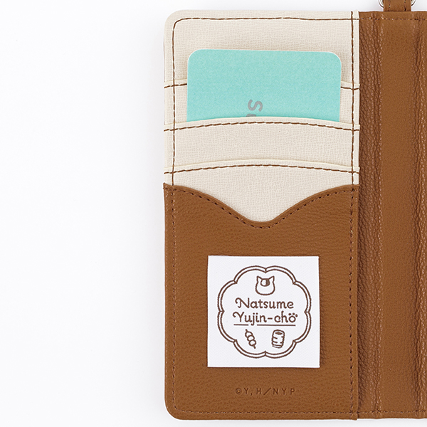 iPhone6/6s/7/8対応のスマートフォンケース。揺れるニャンコ先生モチーフのチャームがポイント! フロントの型押しには『夏目友人帳』の世界観をイメージした植物の他に、ニャンコ先生の足跡も。内側にはカードケースもあり、収納力も抜群のアイテムだ。