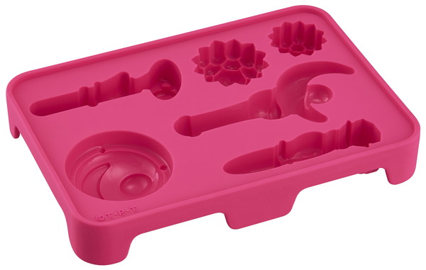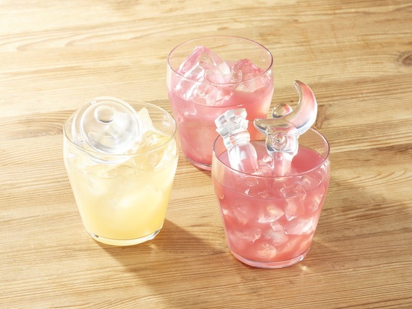 アイストレーの成形色は第1弾同様の濃いめのピンクで、キッチンに置いても可愛く目立つ♪ 出来上がる氷の大きさは“変身ブローチ”は約50mm、“ムーンスティック”は約100mm、“変装ペン”は約80mm、“変身ペンは約80mm。“幻の銀水晶”は中・小のサイズがあり、中は40mm・小は30mm。第1弾と合わせると“幻の銀水晶”は3つのサイズ展開となっており、一度にたくさんのサイズの“幻の銀水晶”がつくることができる。