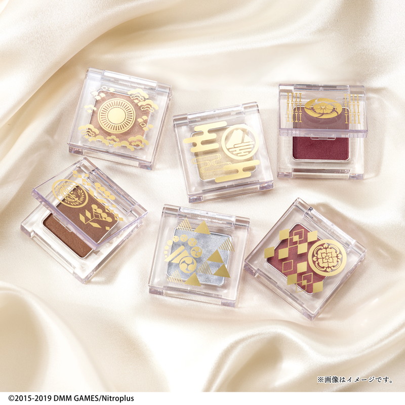 本商品は、『刀剣乱舞-ONLINE-』に登場する“刀剣男士”6振り(Aセット:山姥切国広/山姥切長義、Bセット:へし切長谷部/加州清光、Cセット:大倶利伽羅/燭台切光忠)をイメージしたアイシャドウ2種のセット。