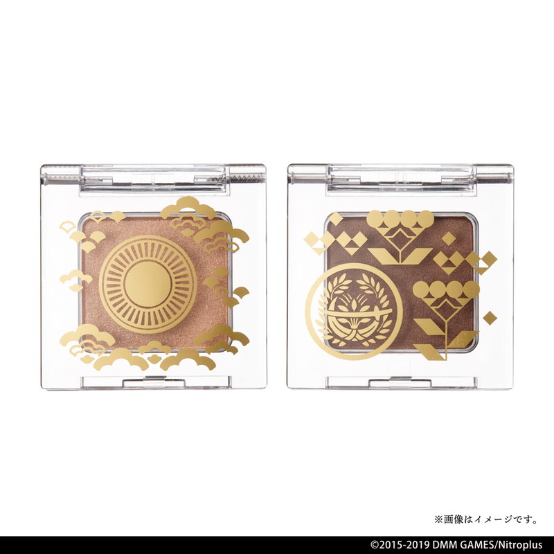コンパクトで持ち運びがしやすいサイズのアイシャドウケースには、各刀剣男士をイメージしたデザインが金箔押しであしらわれている。アイシャドウには、3種の美容成分として、ベニバナ花エキス(整肌成分)、モモ葉エキス(保湿成分)、シャクヤク根エキス(整肌成分)が配合されている。