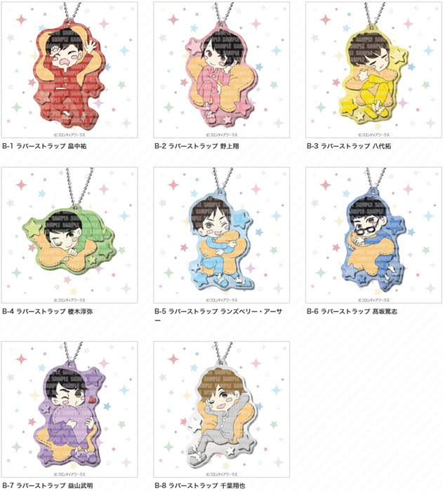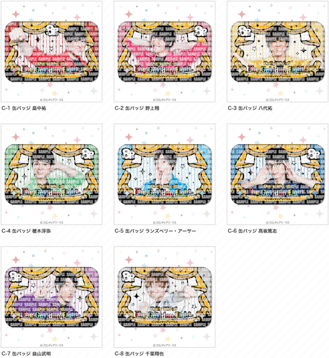また、目玉となるC賞には、完全新作のオリジナルボイスドラマが期間限定(注1)で再生できる“缶バッジ”が登場(注2)。ペアの缶バッジを手に入れると、オリジナルボイスドラマ“劇団エイトの日常”のキャラクター2人によるボイスドラマを聴くことができる。ソロの缶バッジを手に入れると、収録後のキャストによるソロトーク音声を楽しめる。ペアの缶バッジは28種、ソロの缶バッジは8種、全36種で、期間中、スマートフォンにて何度でも再生可能だ。