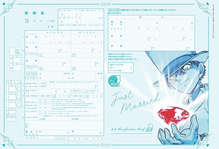 キッドが登場するのは、『CanCam』2017年5月号の付録で大きな話題となった『名探偵コナン』の本当に使える婚姻届の第2弾。今回の映画にちなんだ、キレイなブルーで彩り、キッドの予告状がモチーフとなった、ここでしか手に入らない婚姻届となっている。