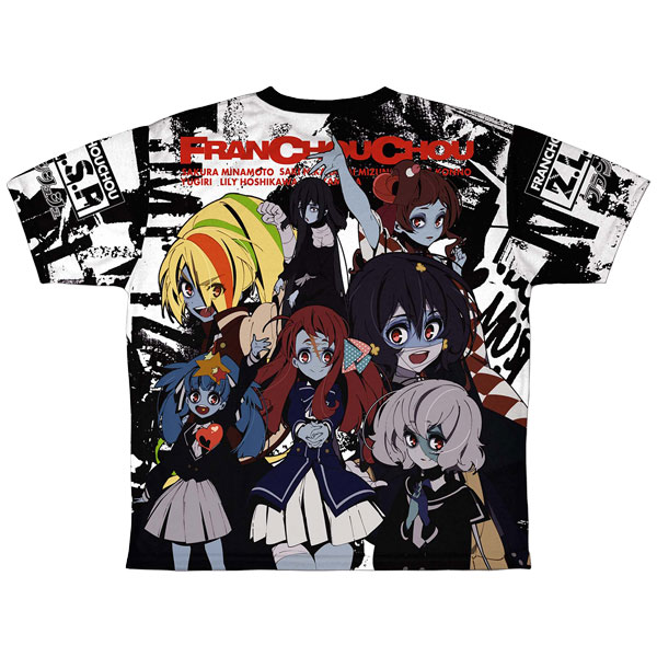 ゾンビィ1号”源さくら”をはじめ、前後の両面いっぱいにメンバーたちの姿をデザインした“フランシュシュ 両面フルグラフィックTシャツ”。伝説の昭和のアイドル“紺野純子”の、ゾンビィver.をネイビー面、アイドルver.をホワイト面に、オモテとウラのリバーシブル仕様で表現した“紺野純子 リバーシブルTシャツ”。2つの面を持つ彼女たちならではのアイテムだ。