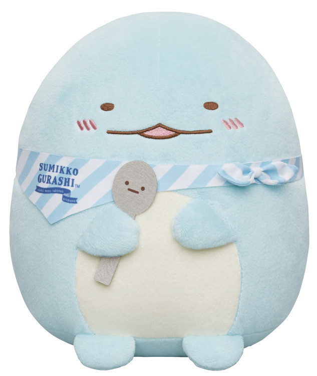 夏らしい爽やかなブルーがテーマカラーのオリジナルデザインの『一番くじ』。カフェメニューを美味しそうに食べているすみっコたちのかわいいぬいぐるみや、『すみっコぐらし』のくじでは初登場のライトがラインナップ! ウエイトレス衣装のたぴおかは3色に光る仕様!