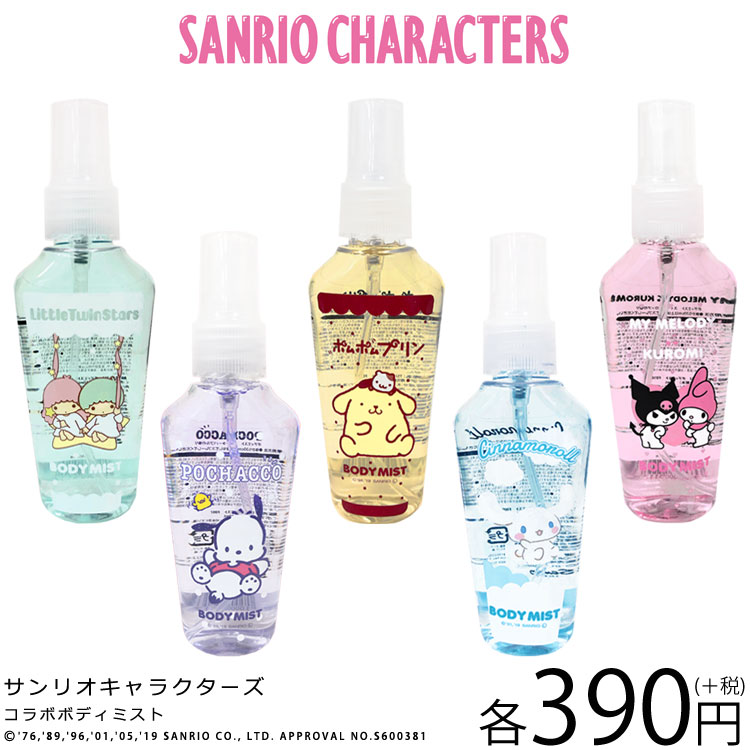 サンキューマートのコスメシリーズに、『サンリオキャラクターズ』かわいいデザインと優しい香りが楽しめる“ボディミスト5種”が登場。全国のサンキューマート・WEBショップにて発売中だ。価格は各390円+税。