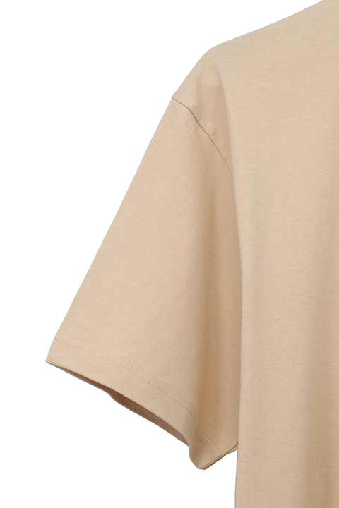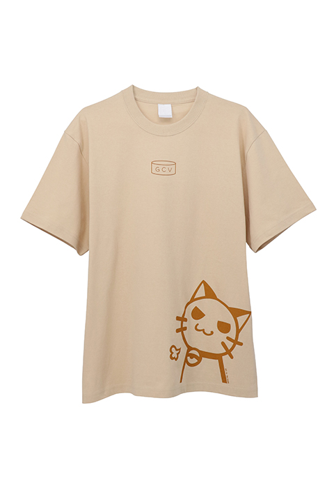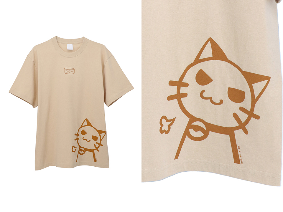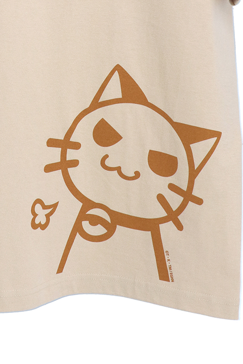 遠坂凛のエプロン柄をデザインしたTシャツ。エプロンのカラーそのままのベージュに、可愛らしい猫のプリントが施されている。