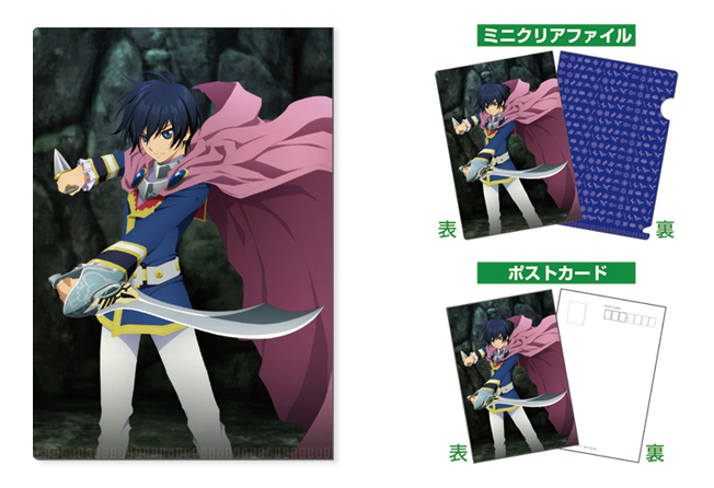 アニメイト、コトブキヤにて、対象シールが貼られた『テイルズ オブ』シリーズの商品を購入すると、1会計3,000円(税込)ごとに、オリジナルミニクリアファイル+ポストカードセットを先着順で1セットもらえる。
