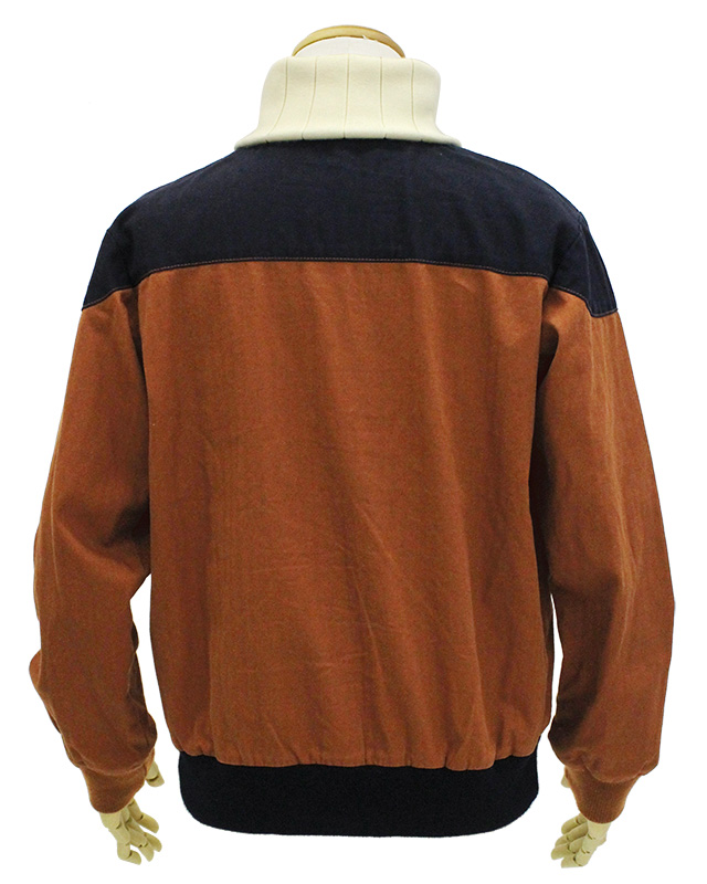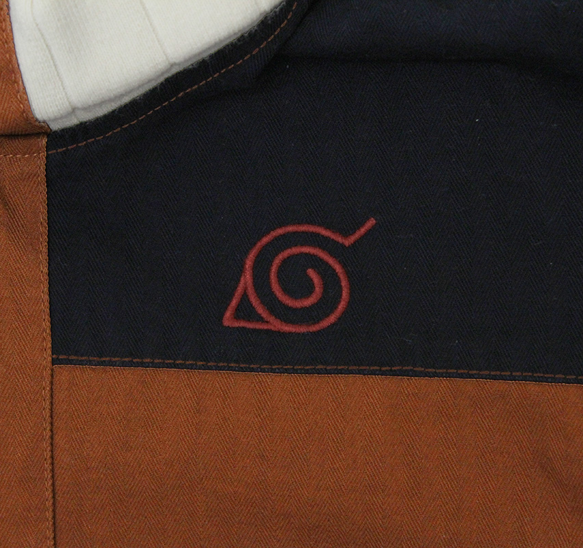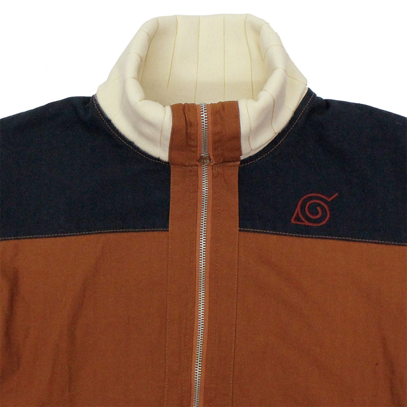 落ち着いた色味のタフな生地を選び、しっかりとした縫製で製作。右胸に“木ノ葉隠れの里のマーク”をワンポイント刺繍。特徴的な襟部分は、このブルゾンのために編み上げたものを使用している