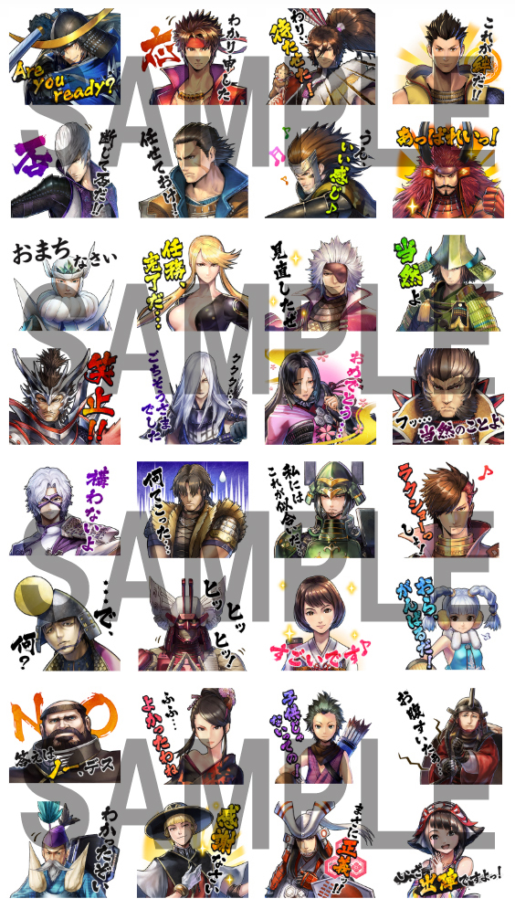 『戦国BASARA バトルパーティー』LINEスタンプ配信中。「Are you ready?」「あっぱれいっ!」など個性豊かなセリフがラインナップ !