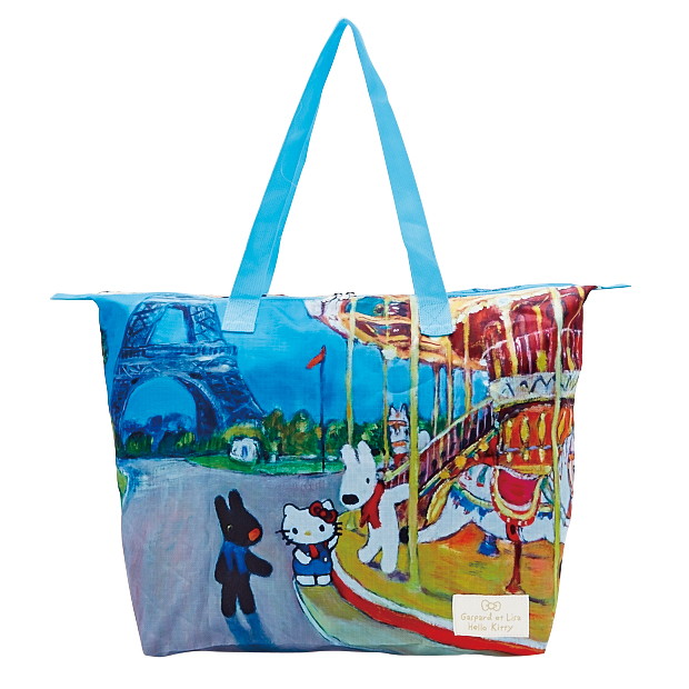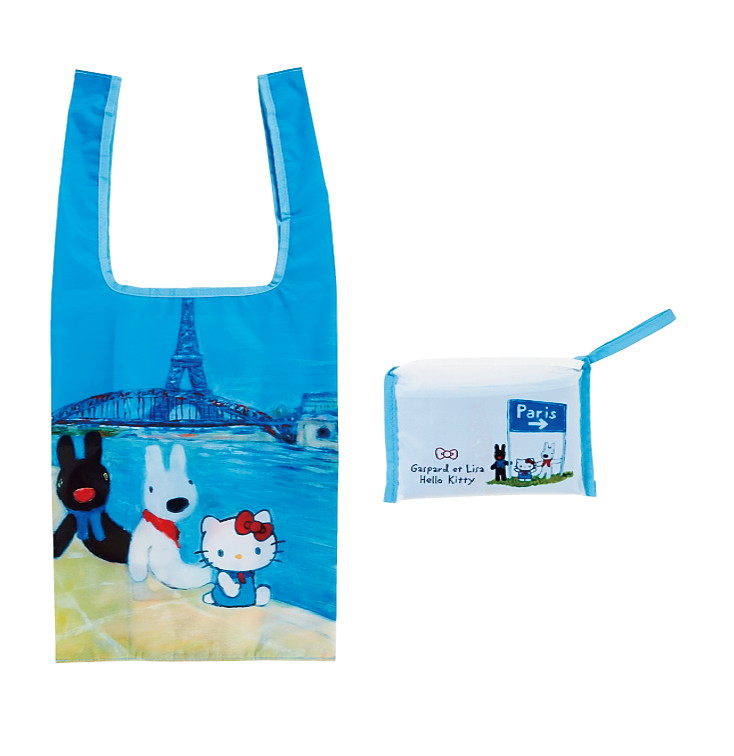 昨年新たに制作され、絵本にも登場する油絵のデザインを使用した今回のシリーズは、パリをモチーフにしているため、日常使いだけでなく、旅行時などに活躍する便利な商品がラインアップ。キャリーケースのハンドルにつけられる折りたたみトートや、パスポートやカードをまとめて収納できるマルチポーチ、内側のポケットに折りたたんでコンパクトに持ち運べる2サイズのエコバッグなど、旅行時にあると便利なアイテムも展開されている。