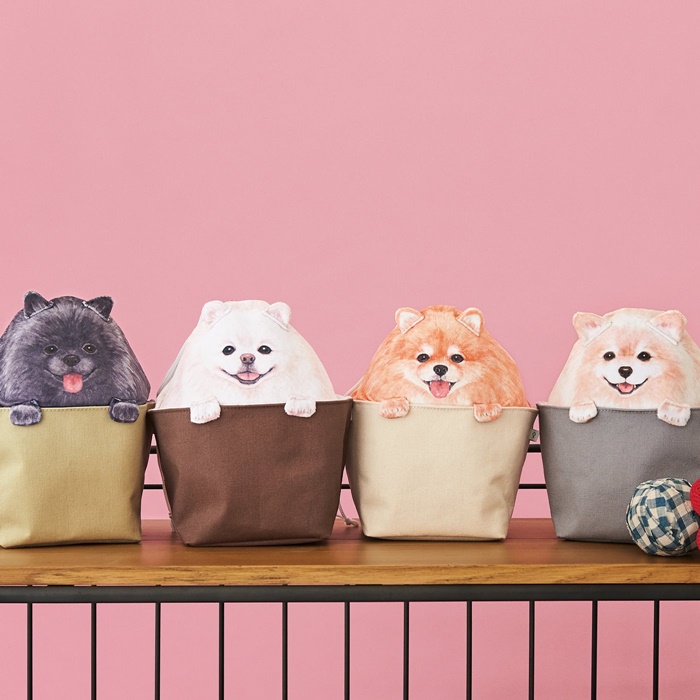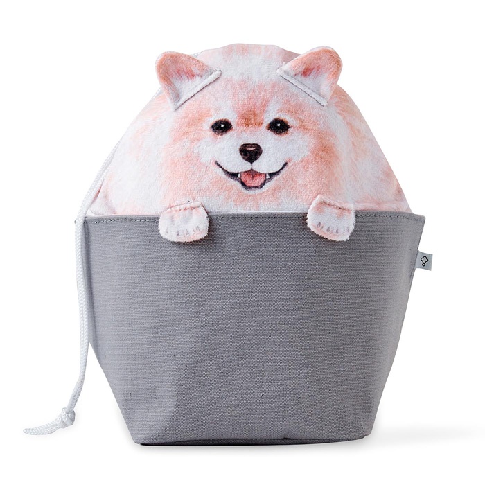 ポメラニアンが笑顔で片づけをお手伝い♪『フェリシモ』のユーモア雑貨ブランドより“きんちゃく収納”登場