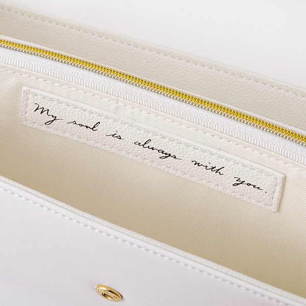 物語クライマックスのキーアイテムである“手紙”をイメージした長財布。アッシュが図書館で読んでいる本と、メガネをイメージしたチャームもポイント! 裏面には英二からアッシュに宛てた手紙を再現し、“Dear Ash.”の型押しがデザインされています。内ポケットには手紙の印象深い言葉である「ぼくの魂はいつも君とともにある」の英文が記しました。