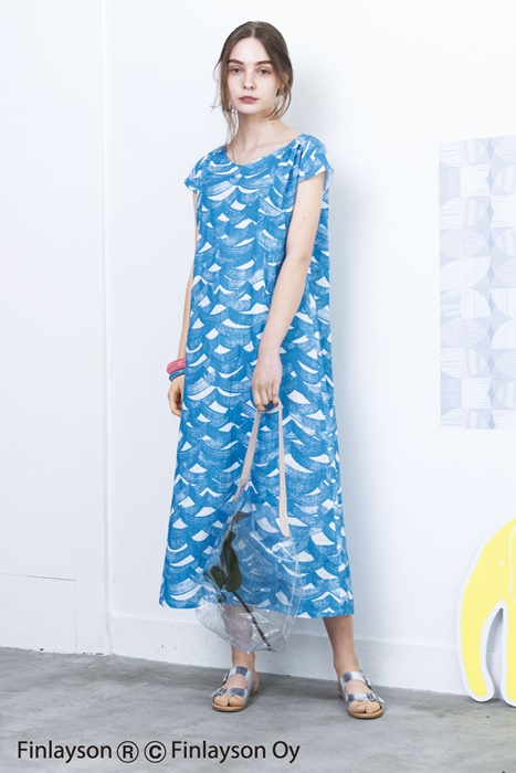 楽しくリズミカルな柄〈ポップ〉を大きくレイアウトした生地はプリントではなくジャカード編みで表現していて、大胆ながらも大人っぽく上品に着こなせます。旬のたっぷりしたシルエットや少し長めの丈もポイントです。日差しに映えるきれいな配色も夏らしい雰囲気。フィンレイソンスペシャルサイトには、このほかにもワンピースがラインナップされていますのでチェックしてお気に入りを見つけてください。