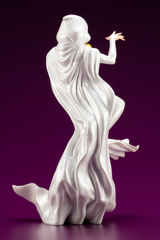 異世界アザラス出身の魔法使いのレイブンは、今宵も呪文を唱えて地球を守る!! 人気の彼女をホワイトコスチュームで立体化。アメリカでは、サンディエゴコミックコンベンション2019で発売される世界で限定1,000個のみの数量限定商品だ。