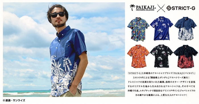 ガンダムの世界観を取り入れたアパレルコンセプトショップ『STRICT-G(ストリクト ジー)』にて、沖縄発純国産アロハシャツメーカー“PAIKAJI(パイカジ)”と今年40周年を迎える『機動戦士ガンダム』との初のコラボレーション商品が登場する。