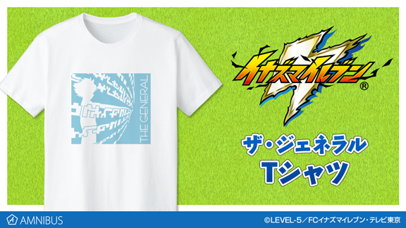 『イナズマイレブン』より、野坂悠馬の必殺タクティクス“ザ・ジェネラル”をイメージしたTシャツが登場。価格は3800円+税。
