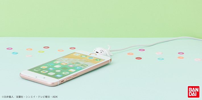 第3弾では、幼稚園の制服姿のしんちゃんと愛犬シロが登場! 制服姿がかわいいしんちゃんと、ぺたっと寝そべった姿が かわいいシロ。幼稚園バスに遅刻はしてもケーブルはしっかり保護してくれる♪