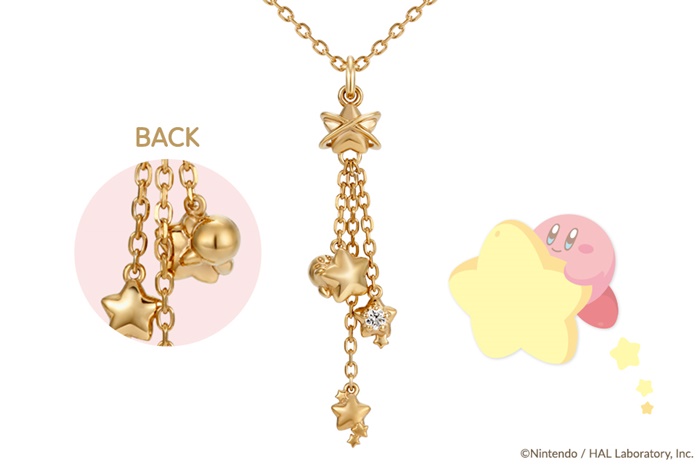 ポップスターからワープスターに乗ったカービィや星がぶらさがって胸元でゆらゆらと楽しげに揺れるネックレス。カービィの世界観をフェミニンなテイストに仕上げました。