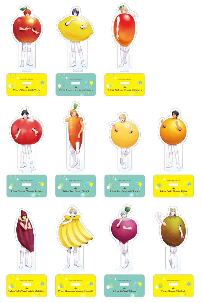 8月23日~9月16日の期間中、関連グッズを購入2,000円(税込)毎に【ブロマイド2枚セット(全11種)】がランダムでもらえる。ブロマイドは野菜ver.と王子ver.の2枚1セットで渡される。さらに、フェアにあわせてベジタブルプリンス衣装の新商品グッズが登場! アニメイトだけでゲットできるアイテムになるのでこの機会をお見逃しなく。
