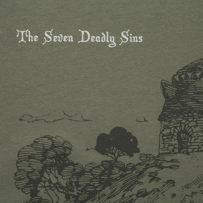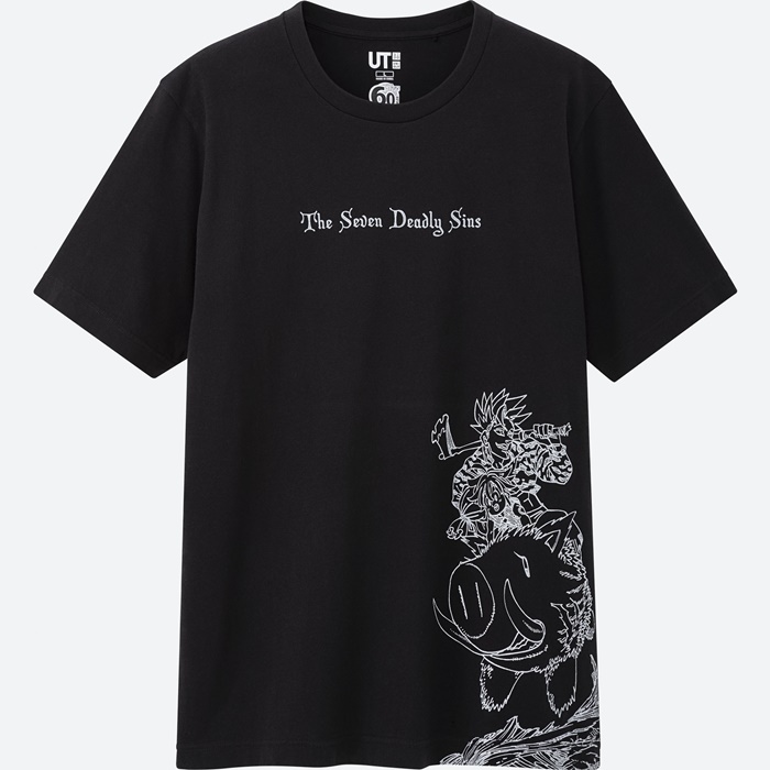 『七つの大罪』は、いまだ人と、ひとならざるものの世界が分かれてはいなかった古の時代、七人の大罪人から組織された伝説の騎士団<七つの大罪>の戦いの物語。鈴木央先生によるファンタジーバトルコミック。七つの大罪の団長・メリオダスをはじめ、共に戦う仲間たちとの旅のワンシーンが描かれています。また、今回初公開となる、鈴木先生と編集者の間で原稿をやり取りする封筒に描かれている、手書きのブタのキャラクター、ホークをプリントしたUTにも注目です。