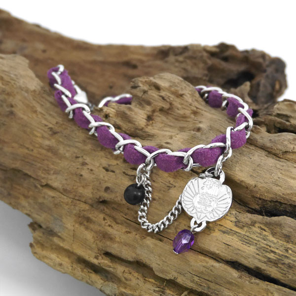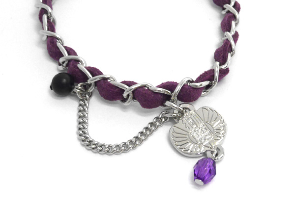 『未良子裕太』をイメージしたバッグチャーム。未良子のイメージカラーを基調に、獅子吼学園の校章チャームやほんの少しだけ“ハード”なイメージの喜平チェーンをアクセントに加えた作品感溢れるアイテムです!