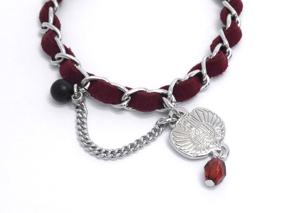 『吉良麟太郎』をイメージしたバッグチャーム。吉良のイメージカラーを基調に、獅子吼学園の校章チャームやほんの少しだけ“ハード”なイメージの喜平チェーンをアクセントに加えた作品感溢れるアイテムです!