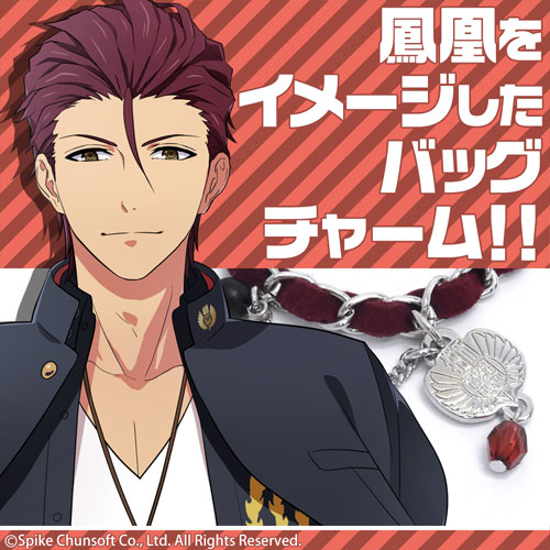 『鬼ヶ島鳳凰』をイメージしたバッグチャーム。鳳凰のイメージカラーを基調に、獅子吼学園の校章チャームやほんの少しだけ“ハード”なイメージの喜平チェーンをアクセントに加えた作品感溢れるアイテムです!