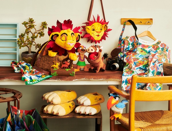 アニメーション版『ライオン・キング』の印象的なシーンをモチーフにしたアイテムの数々がディズニーストアに登場。ラインナップは、プンバァやティモンなど人気キャラクターのぬいぐるみや、カラフルな色合いの折りたたみ傘、シンバの足をモチーフにしたルームシューズなど、雑貨からファッションアイテムまでさまざまなアイテムを展開。