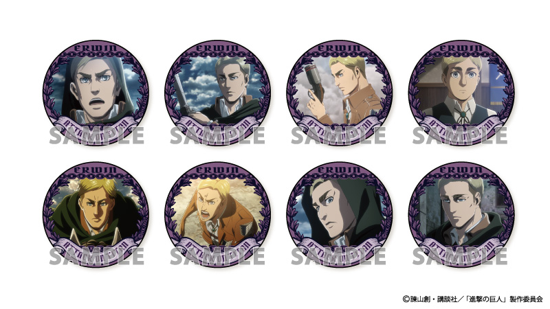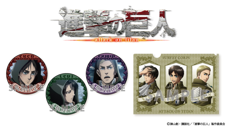 『進撃の巨人』エレン、リヴァイ、エルヴィンだけを集めた“缶バッジ”コレクション登場。描きおろしクリアファイルも!