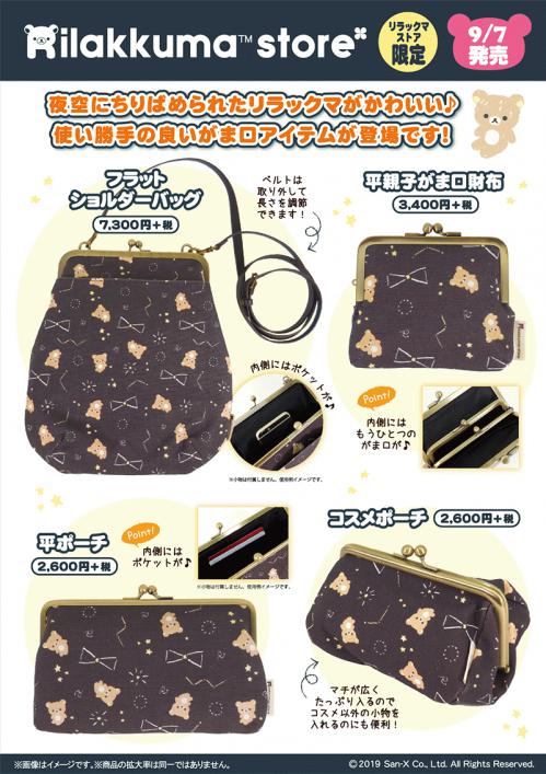 夜空にちりばめられたリラックマがかわいい♪使い勝手の良いがま口アイテムが登場します!
