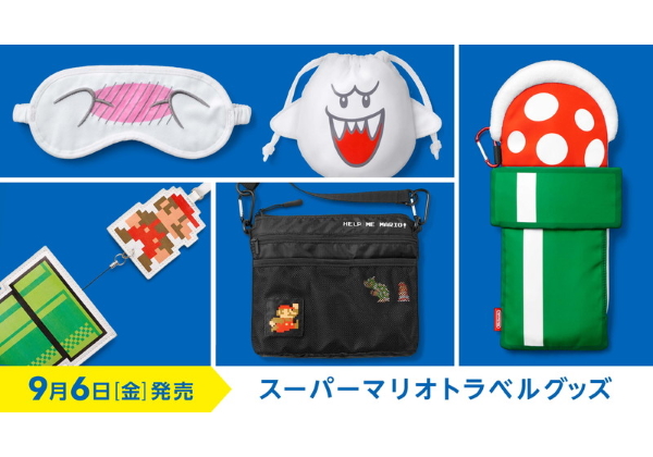 “スーパーマリオ トラベルグッズ”の新商品4種類が、9月6日より全国の生活雑貨販売店、家電量販店、大手通販サイトほかで発売となる。