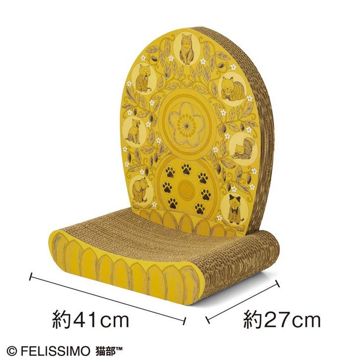 猫がつめをといでくつろぐと、まるで仏さまのように尊い姿に見える、仏像の光背をヒントにした積層ダンボールの猫用つめとぎ。お寺の教えや生活文化から暮らしを心豊かにするヒントを見つける活動をする『フェリシモおてらぶ』が監修した、本格的な仕上がりだ。
