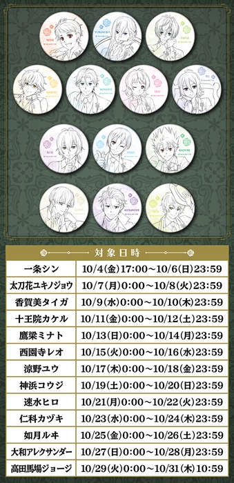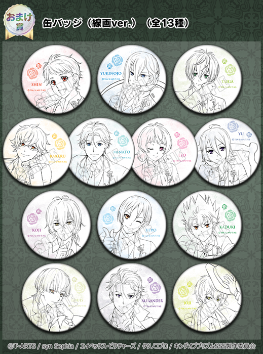 対象日時に『KING OF PRISM -Shiny Seven Stars-』スーツコレクションの10連セットを購入すると、“缶バッジ(線画ver.)”が1個もらえる。