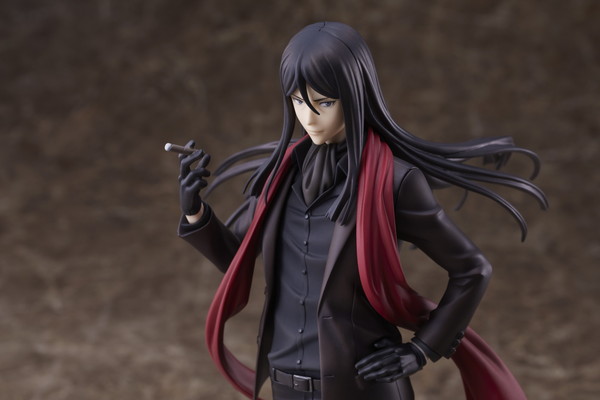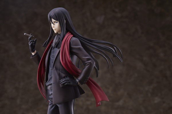 埃っぽい空気、煙草の香り、眉間に刻まれた皴と遠くを見つめる瞳、英国に立つ姿を彷彿とさせる造形は、原型師【菜々子】によるもの。どこか憂いを感じさせる表情は、シンプルな立ち姿ながらもついつい見る者の目を奪う。なびく髪やジャケット等、風を感じる演出も見どころ。落ち着いたコーディネイトに見える服装も、生地の質感や細やかなカラーバランスで英国紳士らしいシックな装いにまとめられている。キャラクターデザイン【中井 準】描き下ろし「キャンバスボード」を付属してお届け。
