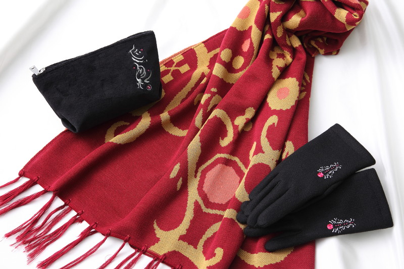 人気楽曲『WiSH VOYAGE』、『Heavenly Visitor』、『奇跡』の衣装をモチーフにしたデザイン。衣装の模様を大胆にあしらったストールを巻いて、上品な手袋を合わせると #アニメバウンド も楽しめる♪