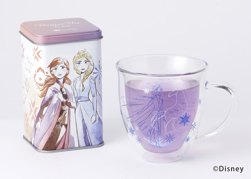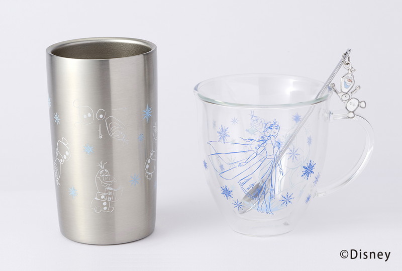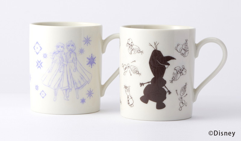 作品のテーマにあわせて、新たな旅立ちに向かう“変化”をイメージしたアイテムが多数展開。お湯を入れるとオラフが消え、アナとエルサが出現するマグカップやレモンを入れると色が変わるお茶、赤から青へのグラデーションカラーの雑貨など特徴的なアイテムが登場する。