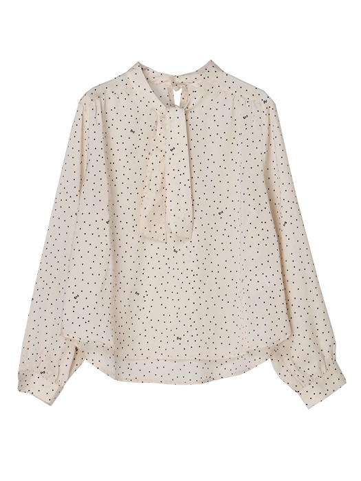 ハローキティのリボンを散りばめたドット柄のブラウス。ボウタイデザインがクラシカルな印象に。