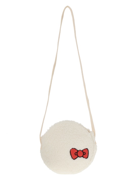 もこもこのボアにリボンのワッペンを付けてハローキティを表現したポシェット。