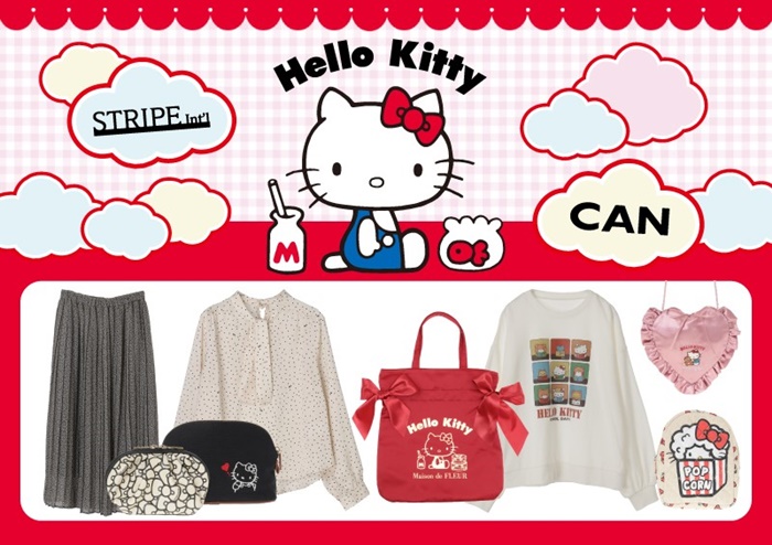 『ハローキティ』とストライプインターナショナルグループの17ブランドとのコラボ商品が11月1日(金)にECサイト『STRIPE CLUB』、『CAN ONLINE SHOP』、全国のストライプインターナショナル、キャンの各ブランド店舗、サンリオのフラッグシップショップ『サンリオワールドギンザ』1階他で発売。また、商品の発売に先駆けて、ECサイト『STRIPE CLUB』で、先行予約を10月18日(金)から実施。
