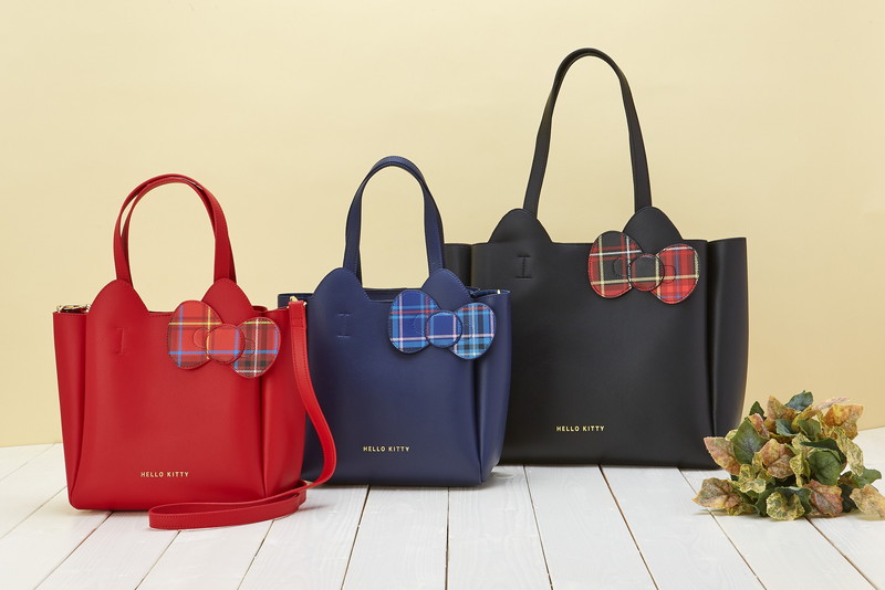 トートバッグ、2WAYミニトートバッグともに、レッド・ネイビー・ブラックの3色展開で、ハローキティのリボンやバッグの裏生地にオリジナルのタータンチェックを使用。特に裏生地は、ハローキティが散りばめられた特別なデザインとなっている。トートバッグは、通勤用としても使いやすい3ルーム形状で荷物がたっぷり入る構造。また、2WAYミニトートバッグは小ぶりなサイズ感ながらも、約13㎝のマチがあり収納力も抜群。取り外し可能なショルダーストラップ付きのため、コーディネートによって使い分けることが出来る。