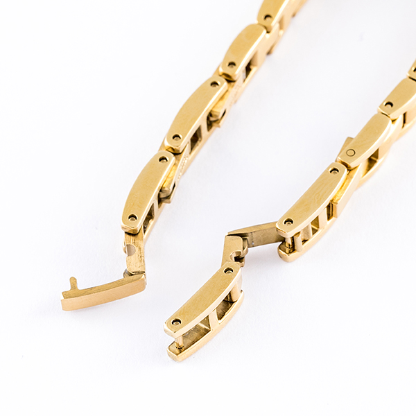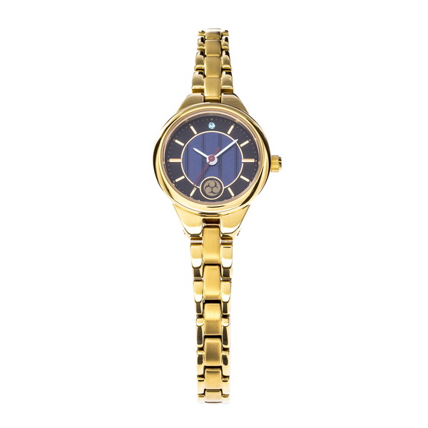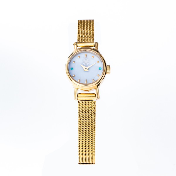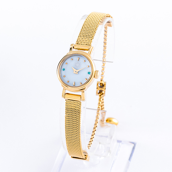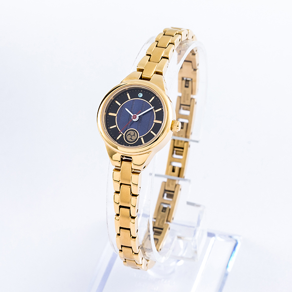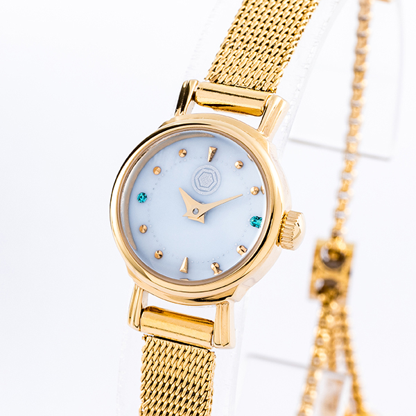 極の姿となり、より一層印象的になった瞳や髪の色を連想させるデザイン。文字盤には瞳のようなエメラルドグリーンのストーンがあしらわれている。中央には甲冑にデザインされている模様がエッチングで施され、さりげない部分にもこだわって作られている。