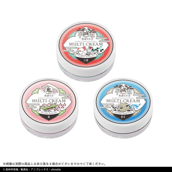 本商品は、アニメ『鬼滅の刃』に登場する、竈門炭治郎や我妻善逸など6キャラクター(Aセット:竈門炭治郎/竈門禰豆子/嘴平伊之助、Bセット:我妻善逸/冨岡義勇/胡蝶しのぶ)をイメージしたマルチクリーム3種<ジェル状保湿クリーム>のセット。