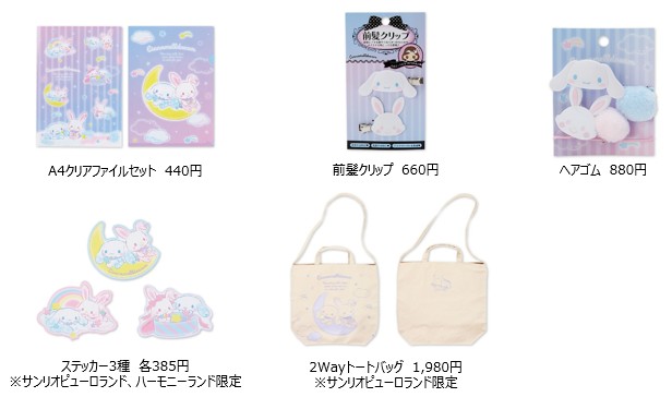 より多くのシナモンファン、メルファンにお届けするため、今回のコラボグッズはピューロランドで販売に加え、サンリオキャラクターパーク ハーモニーランド(大分県日出町)、サンリオオンラインショップでも発売される。