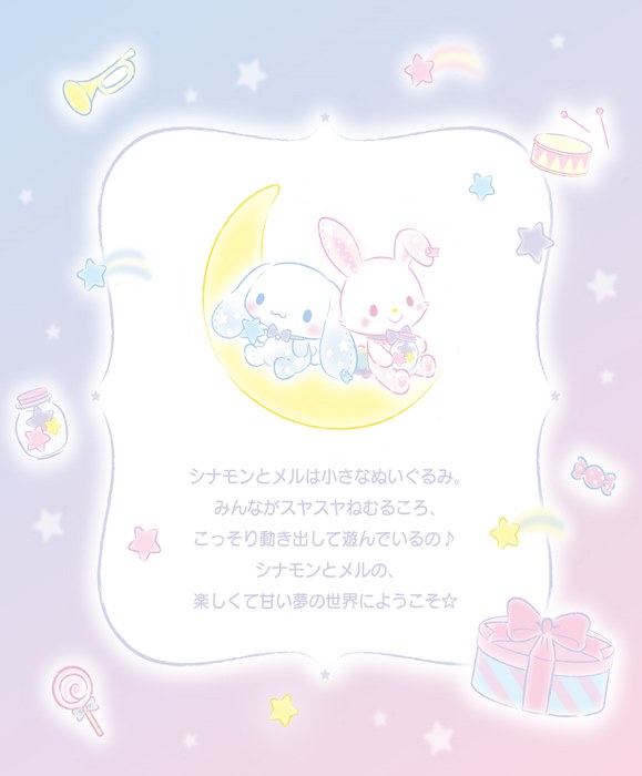 シナモンとメルは小さなぬいぐるみ。みんながスヤスヤねむるころ、こっそり動き出して遊んでいるの♪ シナモンとメルの、楽しくて甘い夢の世界にようこそ☆