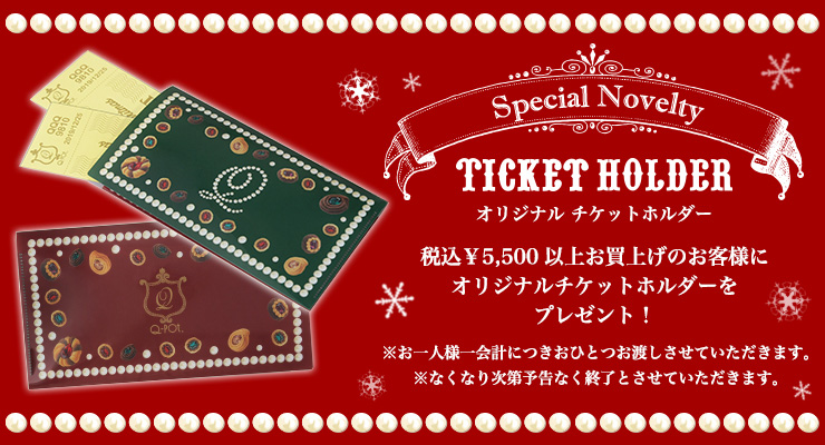 Q-pot.直営各店にて税込5,500円以上のお買上げされた方にノスタルジックな“ジュエルクッキー”がデザインされた、オリジナル チケットホルダーをプレゼント!