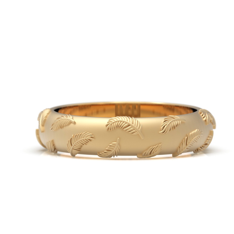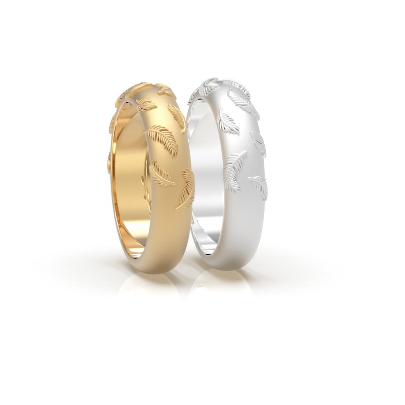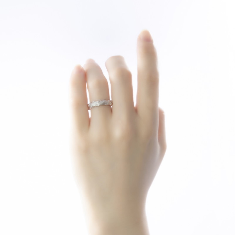 大きな翼を広げ、立ち向かっていく調査兵団の姿をイメージし、羽根をモチーフにしたパターンとして指輪に落とし込まれた美しいデザイン。