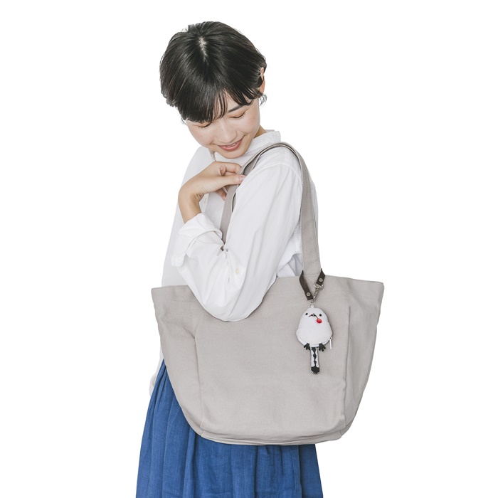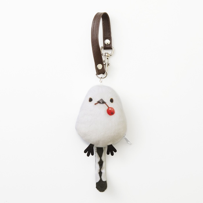 妖精のようなかわいさが人気のシマエナガをモチーフにしたバッグハンガー。公園でお弁当を食べていると、シマエナガがテーブルに飛んできて、じーっと物欲しげに見つめてくる……。そんな公園ランチでの癒しのシーンをイメージし。