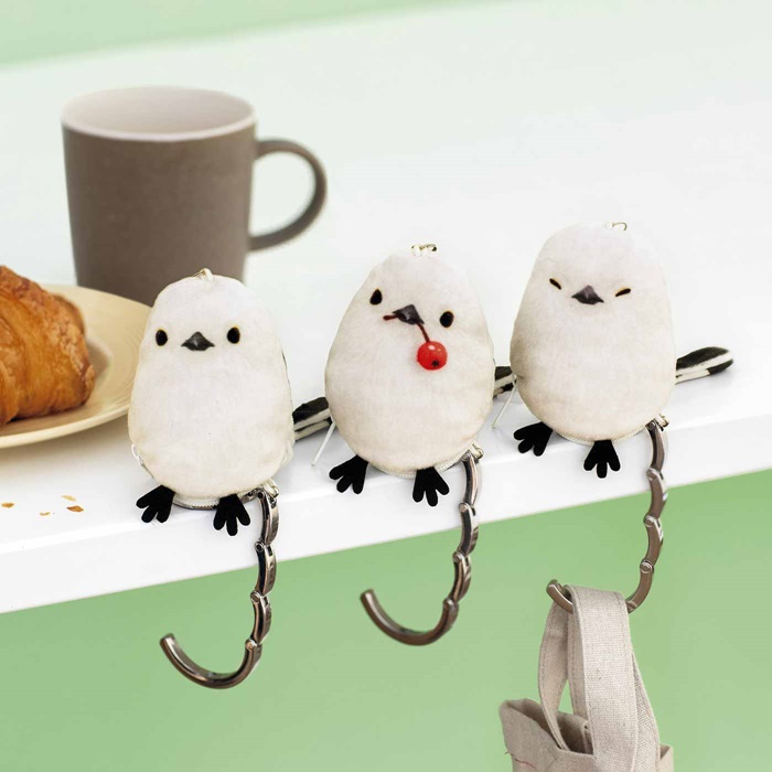 ふだんはチャームとしてバッグに付けて、必要なときにテーブルにセットし、かばん置き場として使用しよう。デザインは〈おいしそうなもの食べてますね〉〈これと交換しませんか?〉〈おなか空いたな~〉の3種類。本物そっくりな造形で、シマエナガにおねだりされている気分を味わえる。小鳥好きな方はもちろん、かわいくて癒される雑貨がお好きな方にもおすすめ!