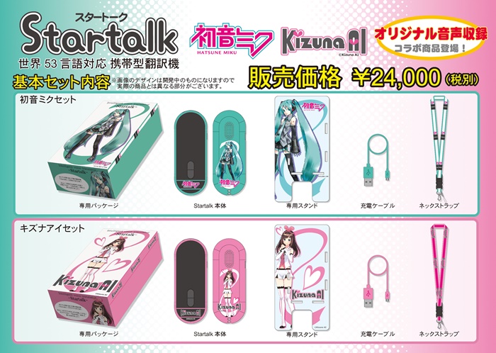音声翻訳機『Startalk×初音ミク』『Startalk×キズナアイ』のコラボレーション商品が発売決定。