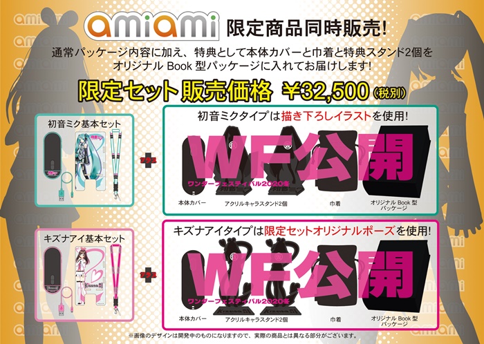 ホビー通販大手『あみあみ』では、あみあみ限定セットが同時発売。限定セットは基本セットに加え、本体カバー、アクリルスタンド2個、巾着をオリジナルBook型パッケージにてお届け。